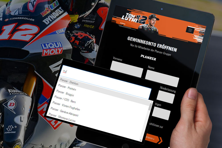 Damit du am Gewinnspiel teilnehmen und einen von insgesamt 5 Preisen gewinnen kannst, musst du ein Tom Lüthi Gewinnkonto eröffnen. Die Anmeldung ist einfach, in wenigen Schritten erstellt und selbstverständlich kostenlos. Die Registrierung sowie Teilnahme am Gewinnspiel ist ausschliesslich Mitarbeitenden der Planzer-Gruppe gestattet. Wähle bei der Registrierung die Filiale oder Tochtergesellschaft für die du arbeitest aus.