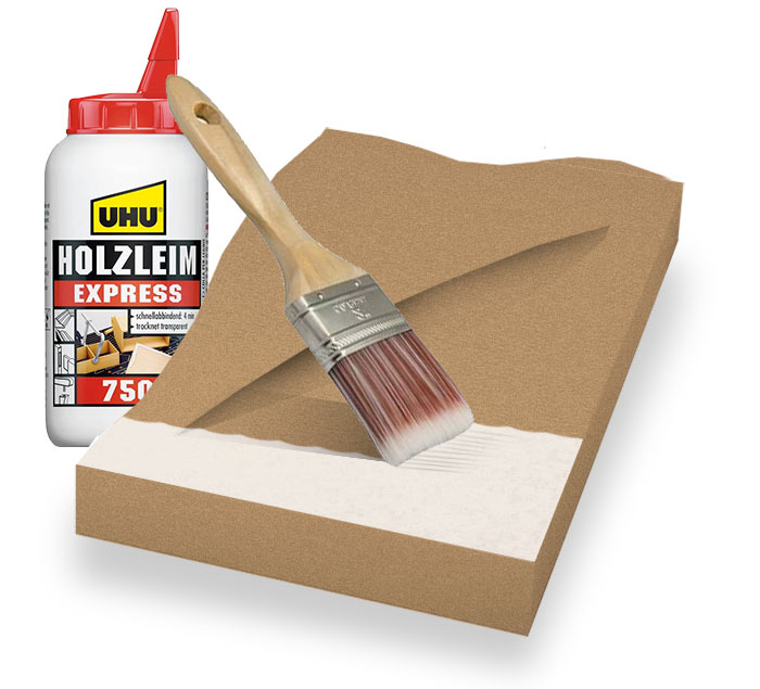 Verklebte Boden­platte gross­zügig mit einem Borsten­pinsel mit Wasser­leim be­strei­chen.