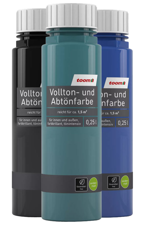 Für die Grun­dierung verwende ich matte Vollton­farben aus dem Bau­markt (Schwarz, Blau, Grün)