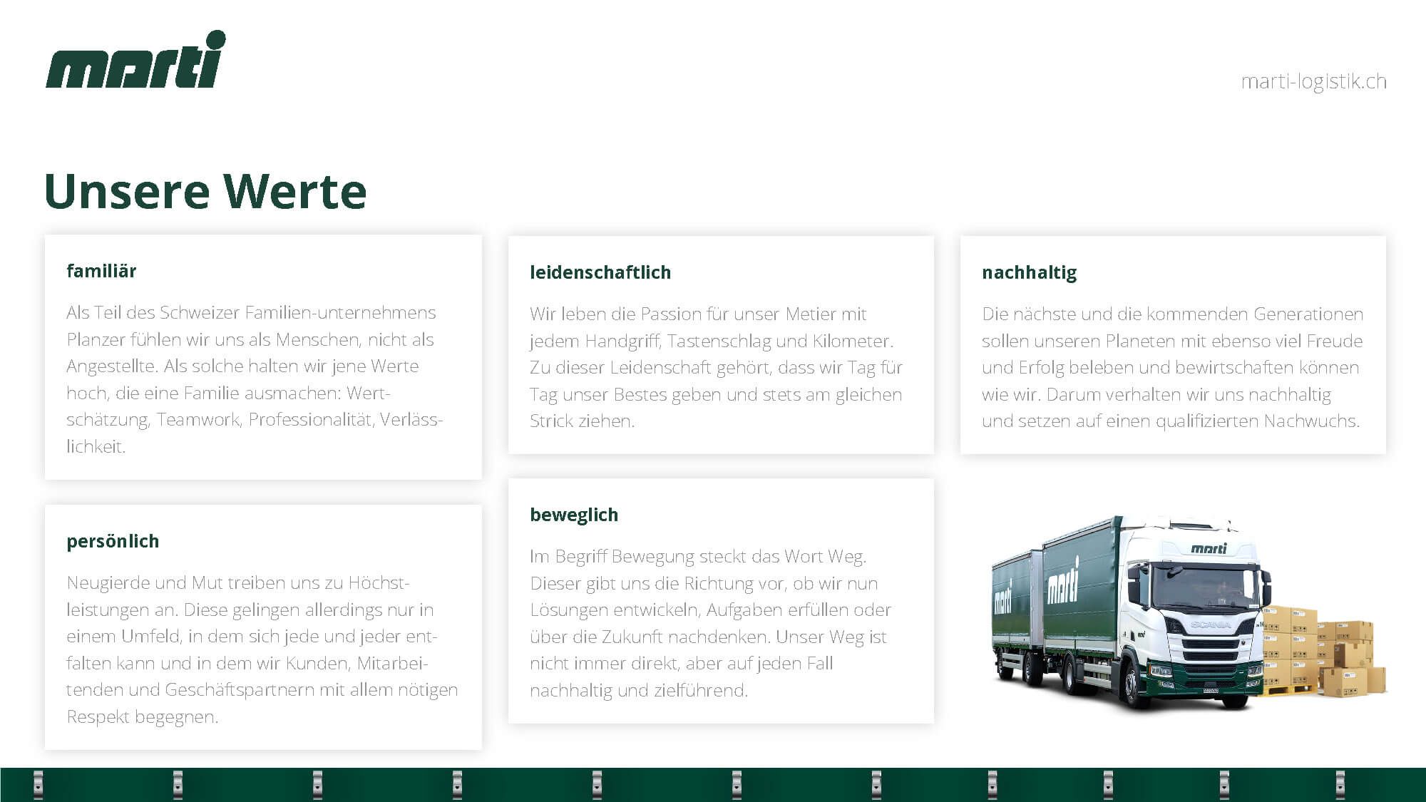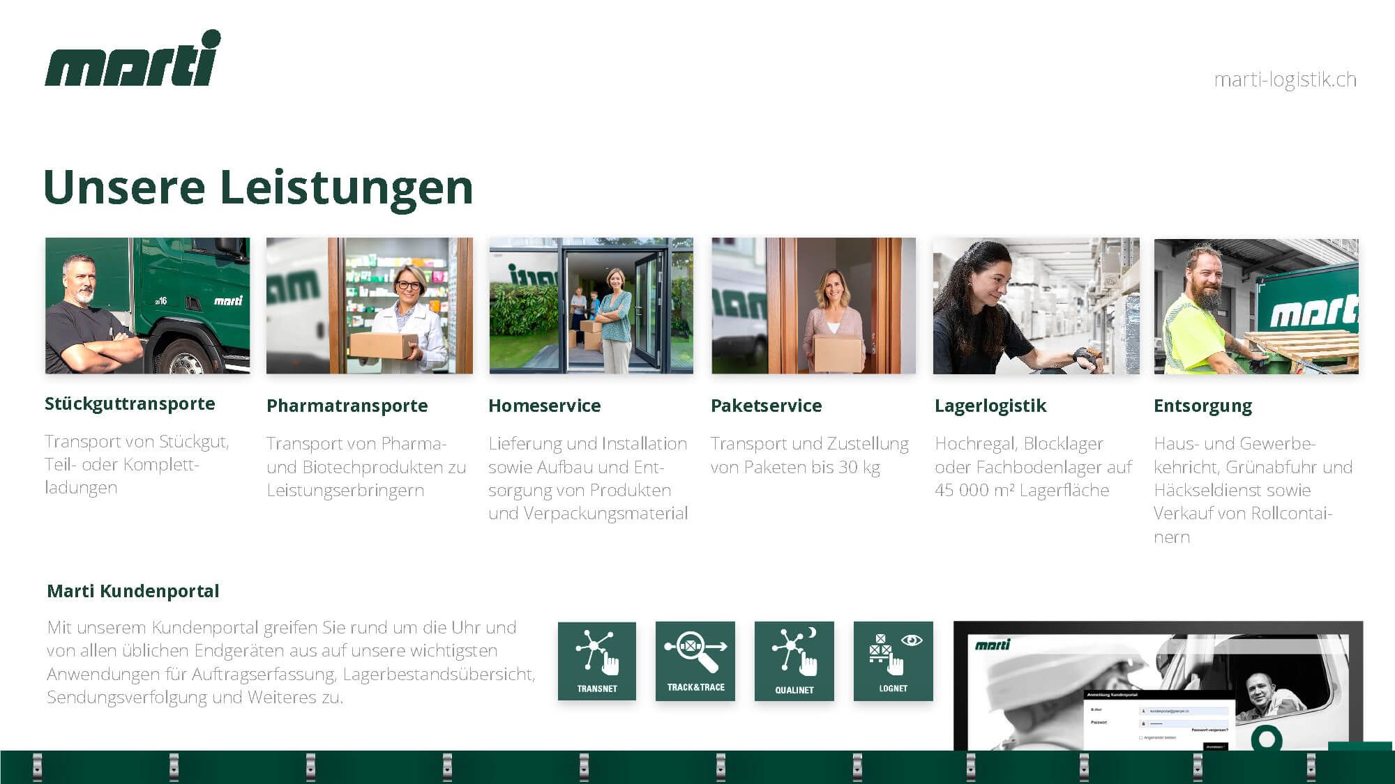 Corporate Design für Marti Logistik – Transport- und Lagerlogistikdienstleistungen