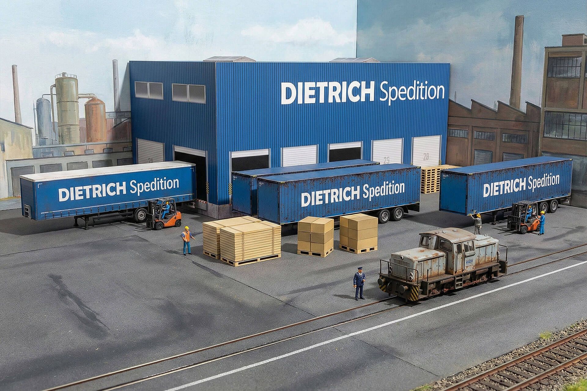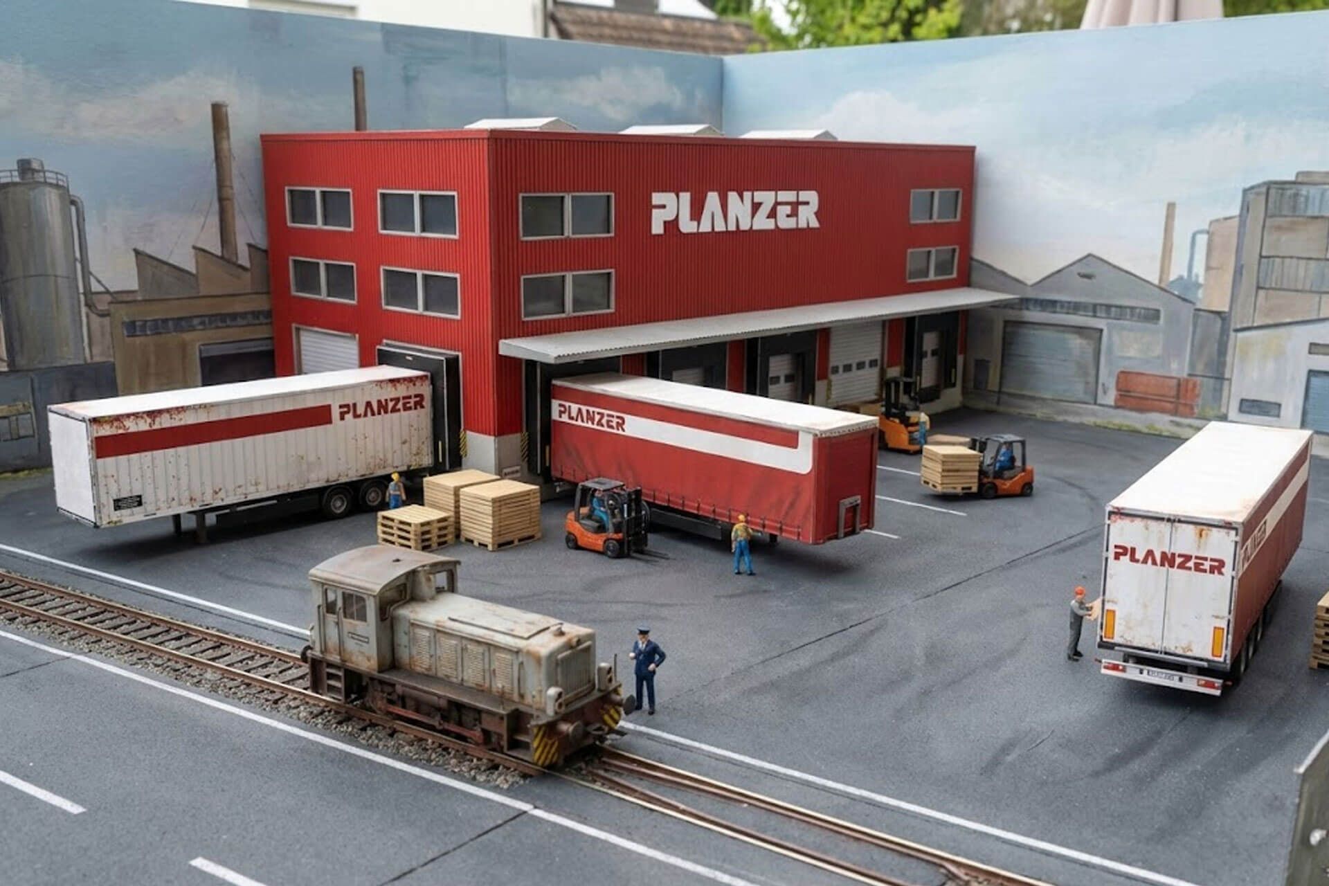 Als ich meine ersten Ausstellungsstücke in H0 und Spur N organisieren musste, ging es bei meinem beruflichen Thema des Corporate Design oftmals um die Veranschaulichung von Dioramen von Unternehmens mit vielen gleichen, visuellen Elementen wie Sattelschleppern, Containern, Gebäude-Fassaden für den Hintergrund und Laderampen für den Vordergrund, wo oftmals das wichtige Detail statt fand. Diese Vorlagen eignen sich besonders als sogenannte Hintergrundmodelle auf Landschaften in Museen, auf Veranstaltungen und Ausstellungen oder auf Güterzüge als Ladegut. Je dicker das Papier ist, auf dem Sie die Kartonmodelle drucken, desto stabiler sind sie nach dem Aufbau. Probieren Sie es einfach aus! Ich wünsche Ihnen viel Spass.