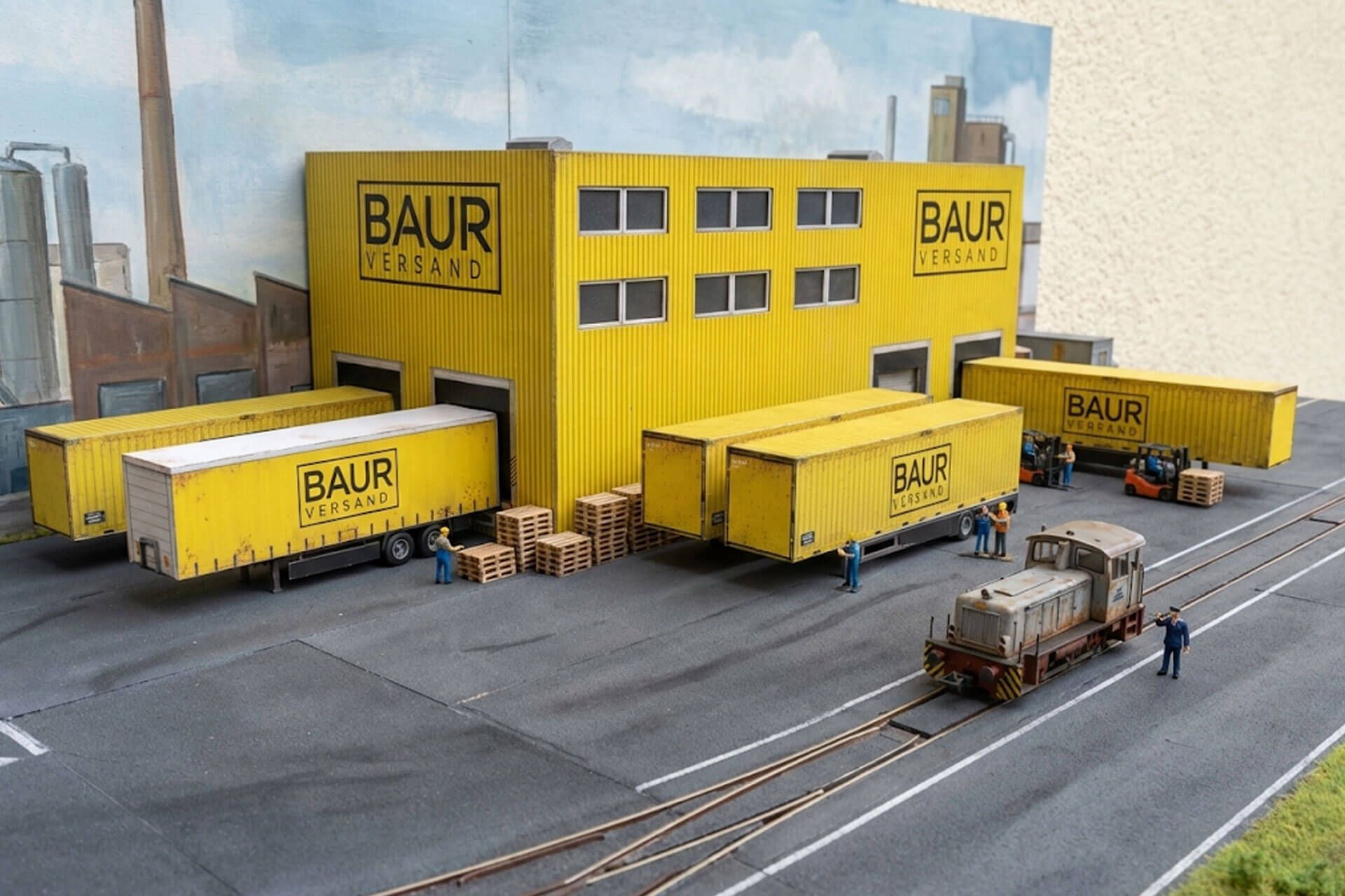 Hintergrund-Lagerhallen und Container für den H0 Karton-Modellbau