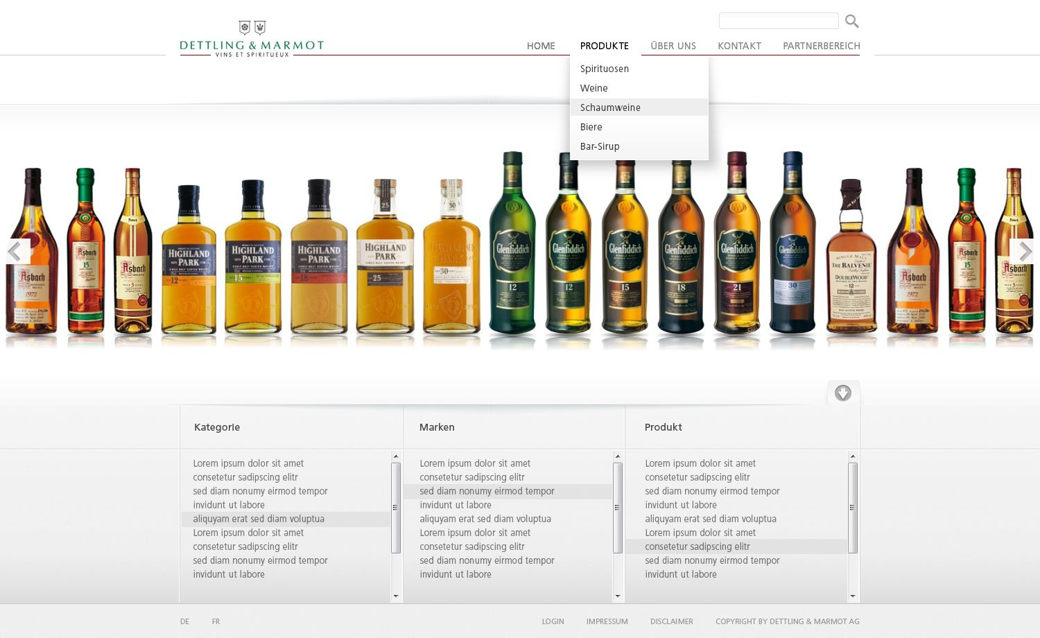 Wir zeigen Ihnen die grosse Welt der Spirituosen, Weine, Schaumweine und Barsirupe. Wir führen Sie durch ein Universum von Geschmackserlebnissen. Dabei lernen Sie auch die Geheimnisse des Destillierens und der Weinproduktion kennen, die von Generation zu Generation weiter getragen werden. Sie erleben hochwertige Produkte, die mit grösstem Respekt für die Zutaten, mit Sorgfalt und höchster Handwerkskunst erzeugt werden. In dieser Kunst spiegeln sich die regionalen Charakteristika und lokalen Besonderheiten wider, aber auch das Klima, die Geschichte und nicht zuletzt der Reichtum lebendiger Traditionen. Jeder Schluck enthüllt etwas mehr von dem jeweiligen Ursprungsland.